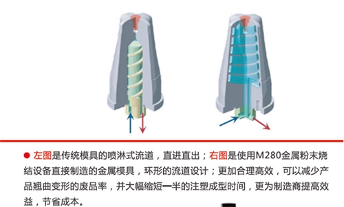 ● 直接燒結金屬模具,包括內部的異形流道和模具外殼,如注塑模具、壓鑄模具、拉伸模具。