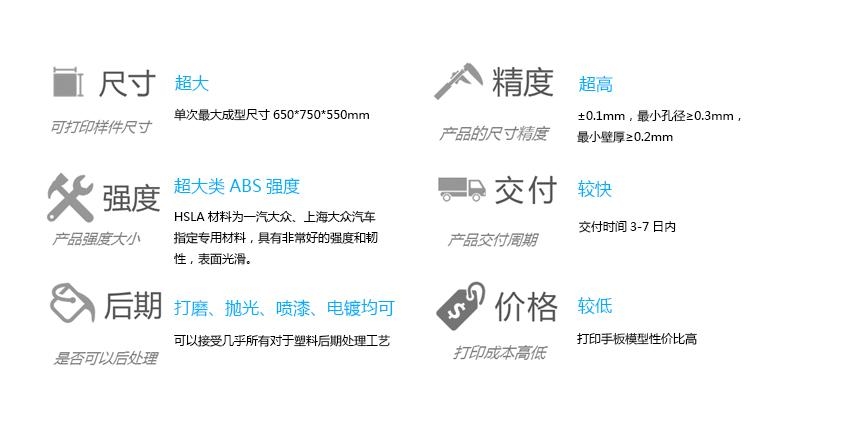 1.HSLA為美國3D Systems公司提供的最先進SLA技術,HSLA提供了最優秀的表面質量;